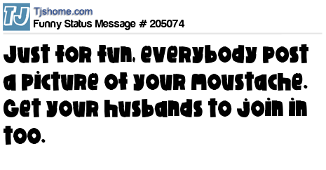 X says Just for fun, everybody post a picture of your moustache. Get your husbands to join in too.