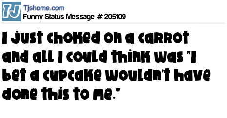 - # 166157 I choked on a carrot this afternoon and all I could think was "I bet a cupcake wouldn't have done this to me."
