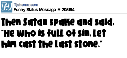 X says Then Satan spake and said, "He who is full of sin, let him cast the last stone."