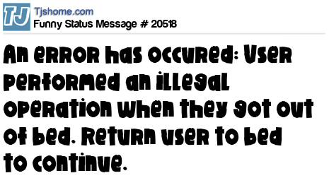 X An error has occured: User performed an illegal operation when they got out of bed. Return user to bed to continue.