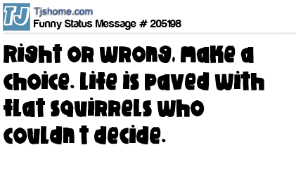 X says Right or wrong, make a choice. Life is paved with flat squirrels who couldn’t decide.