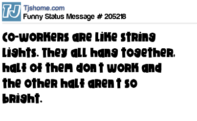 - # 208574 Coworkers are like Christmas lights. They hang together, half of them don't work and the other half aren't so bright.