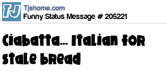 - # 172155 Italian bread is just like regular bread but it's gold chain gets stuck in its chest hair while it blows out your kneecaps.