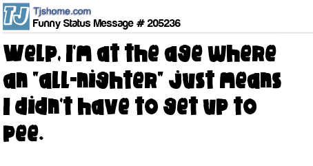 X says Welp, I'm at the age where an "all-nighter" just means I didn't have to get up to pee.