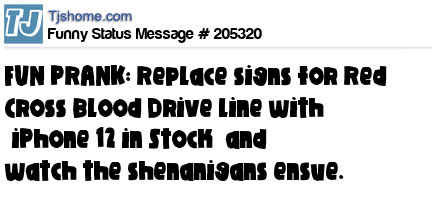 X says FUN PRANK: Replace signs for Red Cross Blood Drive line with “iPhone 12 in Stock” and watch the shenanigans ensue.