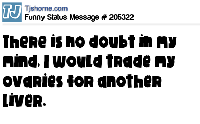 X says There is no doubt in my mind, I would trade my ovaries for another liver.