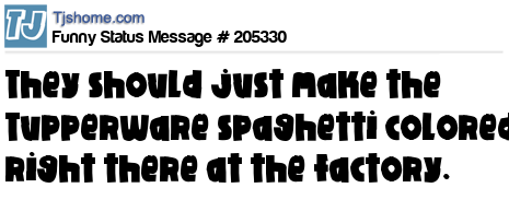- # 171803 Leftover spaghetti is why someone invented Tupperware. No one looks cool trying to put spaghetti in a ziplock bag.