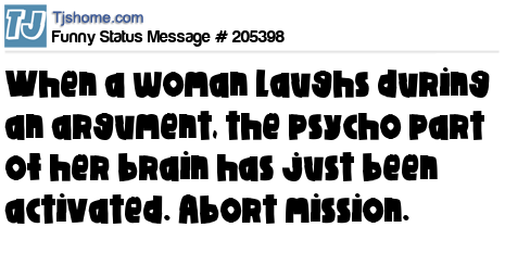 - # 210020 When a woman laughs during an argument, please know that the psycho part of her brain has been activated. Abort mission.