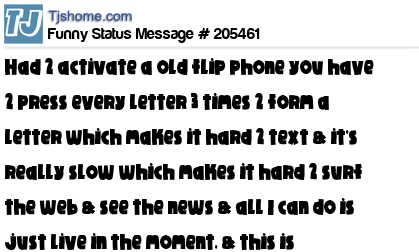 X is Had 2 activate a old flip phone you have 2 press every letter 3 times 2 form a letter which makes it hard 2 text & it's really slow which makes it hard 2 surf the web & see the news & all I can do is just live in the moment, & this is awesome!