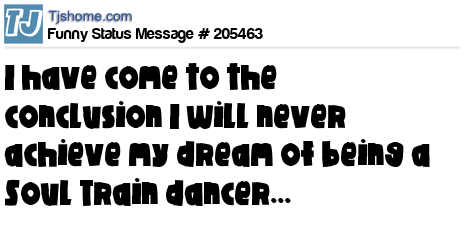 X says I have come to the conclusion I will never achieve my dream of being a Soul Train dancer...