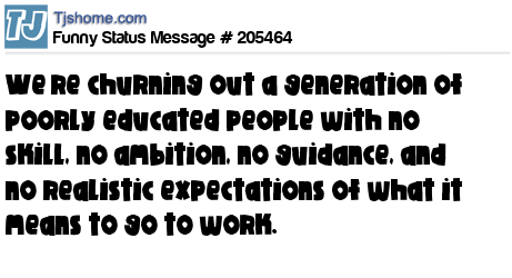 X says We’re churning out a generation of poorly educated people with no skill, no ambition, no guidance, and no realistic expectations of what it means to go to work.