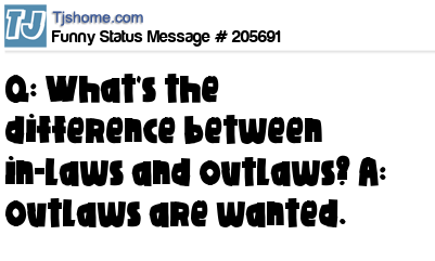 - # 70021 asks..what's the difference between in-laws and outlaws? Outlaws are wanted.