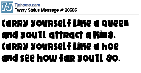 - # 100970 Carry yourself like a queen and you will attract a king! Carry yourself like a hoe, and see how far you will go.