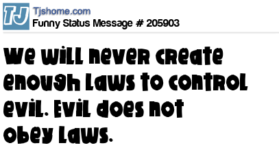 X says We will never create enough laws to control evil. Evil does not obey laws.