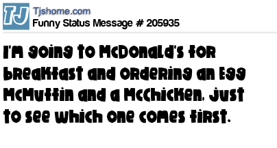 - # 65178 I like going to mcdonalds and ordering a egg mcmuffin and a mcchicken just to see what comes first.