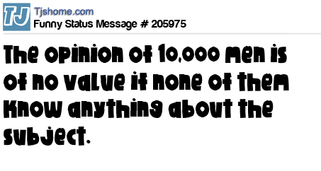 X says The opinion of 10,000 men is of no value if none of them know anything about the subject.