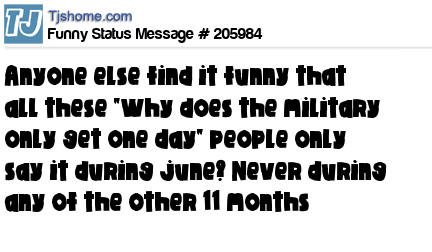 X says Anyone else find it funny that all these "Why does the military only get one day" people only say it during june? Never during any of the other 11 months