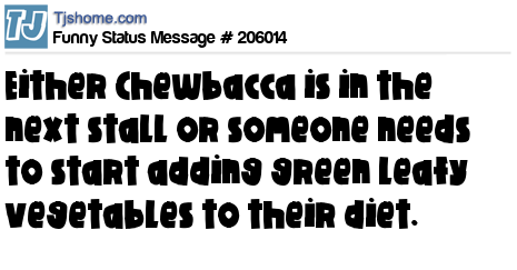 X says Either Chewbacca is in the next stall or someone needs to start adding green leafy vegetables to their diet.