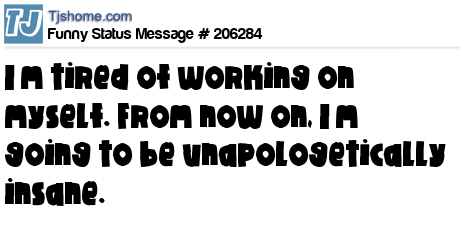 X says I’m tired of working on myself. From now on, I’m going to be unapologetically insane.