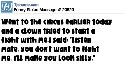 X went to the circus earlier today and a clown tried to start a fight with me.I said: "Listen mate, you don't want to fight me. I'll make you look silly."