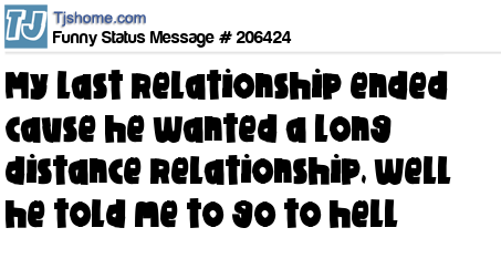 X says My last relationship ended cause he wanted a long distance relationship, well he told me to go to hell