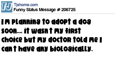 - # 151925 I'm planning to adopt a dog soon, it wasn't my first choice but my doctor told me I can't have any biologically.