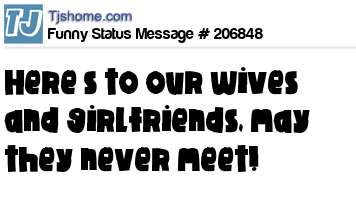 - # 50220 Here's to our wives and girlfriends: May they never meet!