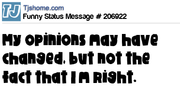- # 14433 My opinions may have changed, but not the fact that I am right.