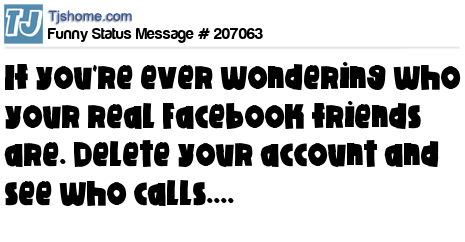 - # 201487 If you are ever wondering who your real friends are, delete your Facebook account and see who calls.