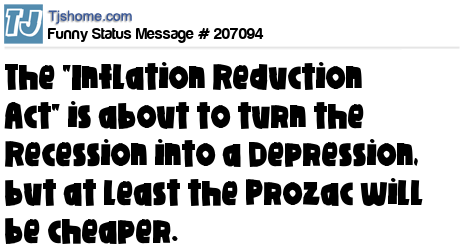 X says The "Inflation Reduction Act" is about to turn the Recession into a Depression, but at least the Prozac will be cheaper.