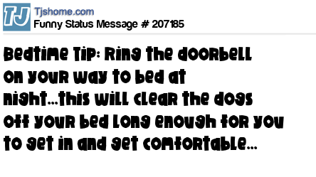 X is Bedtime Tip: Ring the doorbell on your way to bed at night...this will clear the dogs off your bed long enough for you to get in and get comfortable...