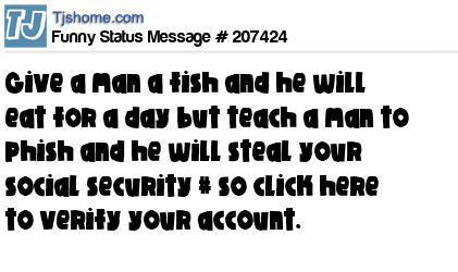 X says Give a man a fish and he will eat for a day but teach a man to phish and he will steal your social security # so click here to verify your account.