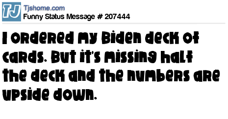 X is I ordered my Biden deck of cards. But it's missing half the deck and the numbers are upside down.