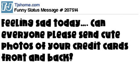 X says Feeling sad today…. Can everyone please send cute photos of your credit cards front and back?