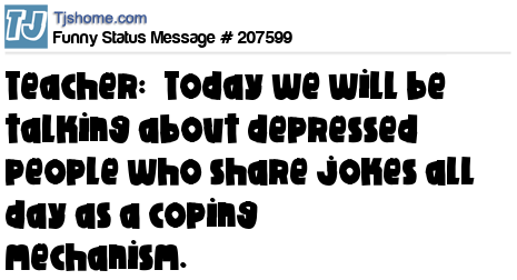 X says Teacher: “Today we will be talking about depressed people who share jokes all day as a coping mechanism.”