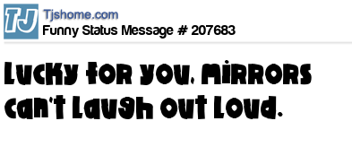 - # 16399 Unfortunetley for me, mirrors dont talk. Lucky for you, they dont laugh either.