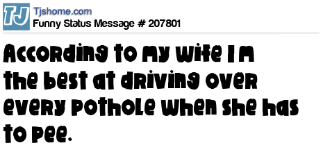 X says According to my wife I’m the best at driving over every pothole when she has to pee.