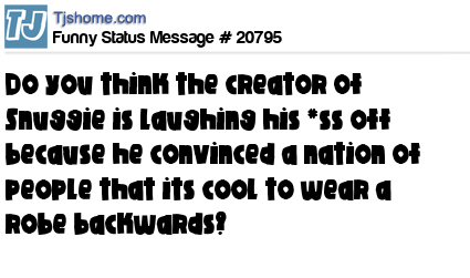 X do you think the creator of Snuggie is laughing his *ss off because he convinced a nation of people that its cool to wear a robe backwards?
