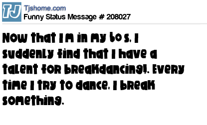 X says Now that I’m in my 60’s, I suddenly find that I have a talent for breakdancing!. Every time I try to dance, I break something.