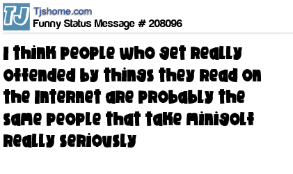 X says I think people who get really offended by things they read on the Internet are probably the same people that take minigolf really seriously