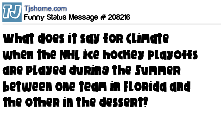 X says What does it say for Climate when the NHL ice hockey playoffs are played during the Summer between one team in Florida and the other in the dessert?