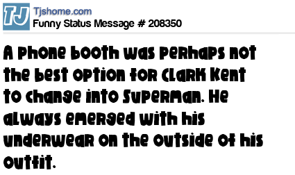 - # 90472 I hope the new Superman movie is just two hours of Clark Kent frantically searching for a phone booth.