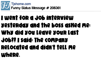 X says I went for a job interview yesterday and the boss asked me: Why did you leave your last job?? I said: The company relocated and didn't tell me where.