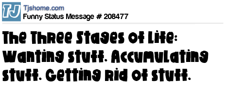 - # 208903 The three stages of life: Wanting stuff... Accumulating stuff... Getting rid of stuff.