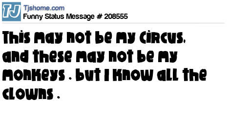 X says This may not be my Circus, and these may not be my monkeys . but I know all the clowns .
