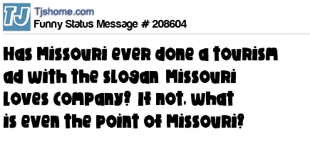 X says Has Missouri ever done a tourism ad with the slogan ‘Missouri Loves Company?’ If not, what is even the point of Missouri?
