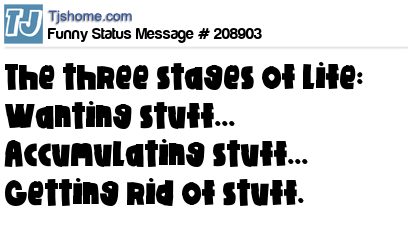 - # 208477 The Three Stages of Life: Wanting stuff. Accumulating stuff. Getting rid of stuff.