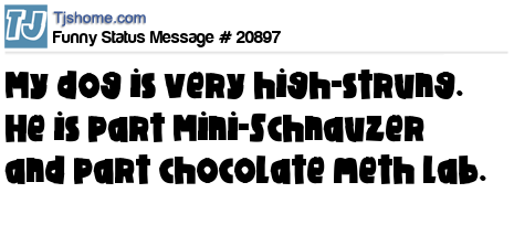 X is My dog is very high-strung. He is part Mini-Schnauzer and part chocolate meth lab.