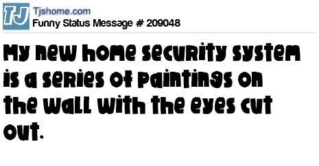 X says My new home security system is a series of paintings on the wall with the eyes cut out.