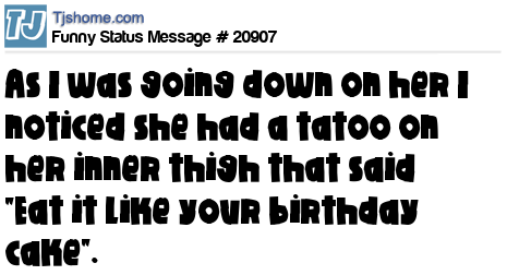 X is As I was going down on her I noticed she had a tatoo on her inner thigh that said "Eat it like your birthday cake".